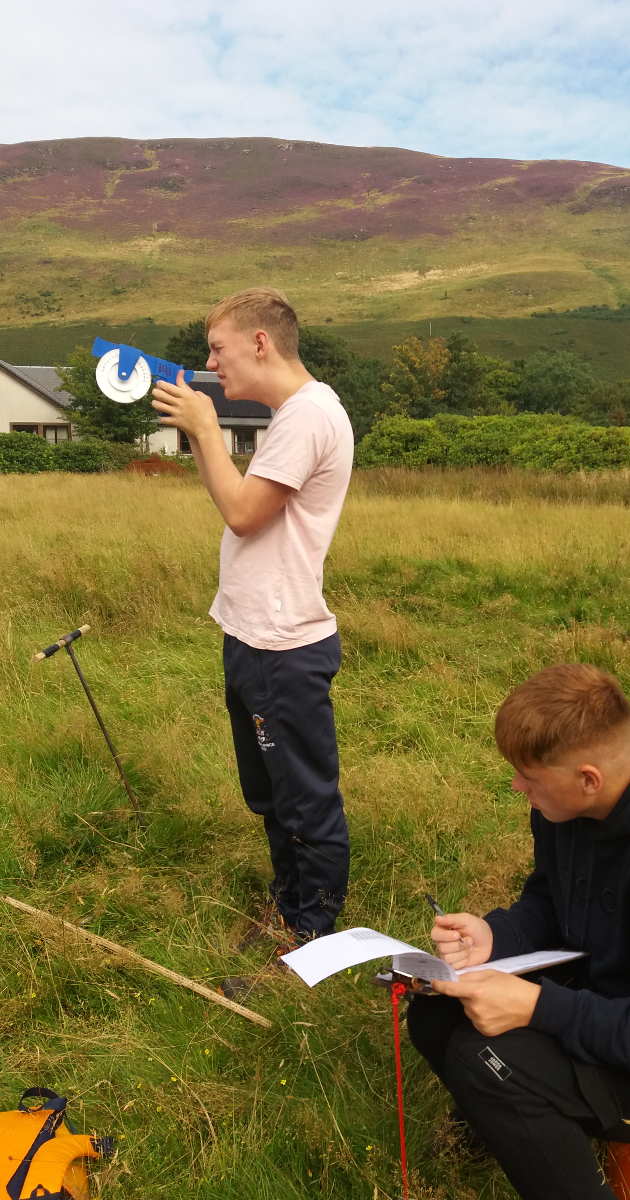 On day two they turned their hand to rivers and compared the physical, chemical, and biological characteristics of the Glen Chalmadale and the Gleann Easan Biorach. Pupils measured a wide range of variables such as velocity, cross sectional area and biotic activity to name but a few. After identifying the presence of stonefly and mayfly nymphs, they concluded the water was clean and of a high quality. Safe in the knowledge of their findings, pupils drank the fresh water to quench their thirst after what had been another glorious day. Following lunch, the students took to the hills and conducted soil and vegetation surveys. They enjoyed using soil augers, pH probes and quadrat sampling to investigate how soil properties and vegetation species change along the catena.