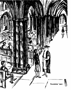 The image featured comes from our school magazine and was illustrated in 1961. The sketch was created to imagine what that very first Founders’ Day might have looked like. Remarkably, many of the traditions captured in the drawing feel strikingly familiar today – a testament to the enduring spirit of the occasion.