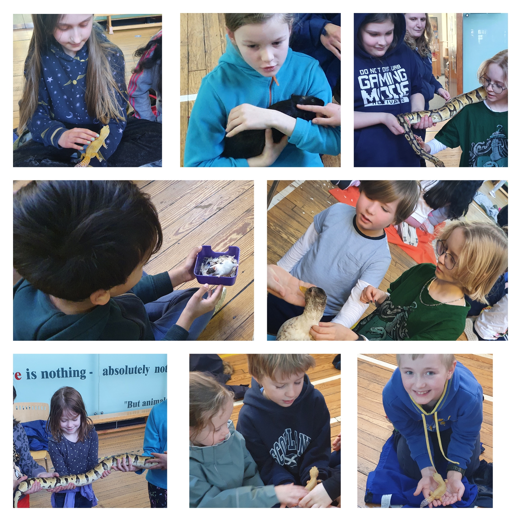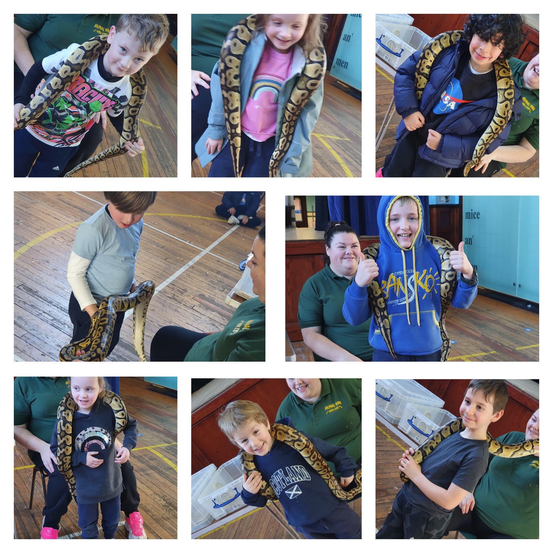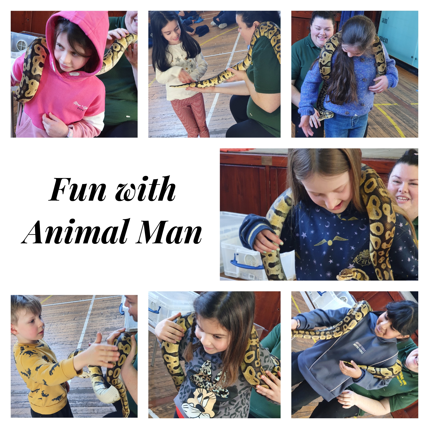 The group enjoyed a visit from Animal Man on Thursday, with everyone getting up close and personal with a python, rabbit, duck, chicken, iguana, mouse, cockroach, tarantula and giant snail. The children enjoyed learning all about the animals and insects on the day.