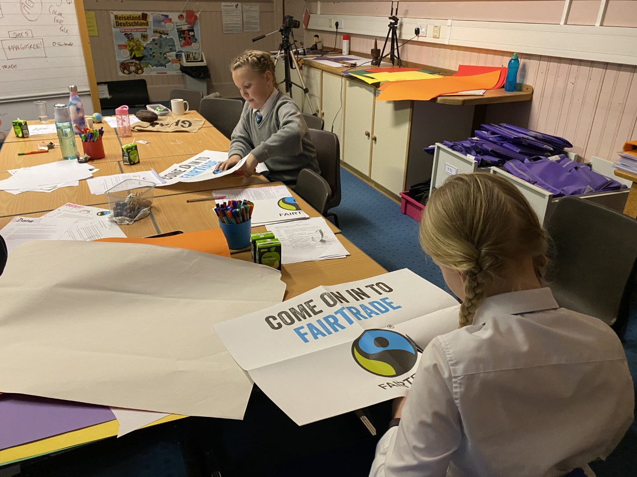 Pupils from P4 – P7 were joined by their teacher Mrs Buchan and Head of Art and Design, Mrs Breckenridge, and they managed to create a wonderful video titled ‘Fairtrade story: A Fair Tale’, promoting the importance of Fairtrade cocoa in Ghana.They were also joined by Colleen Tait from the Scottish Fairtrade Forum.