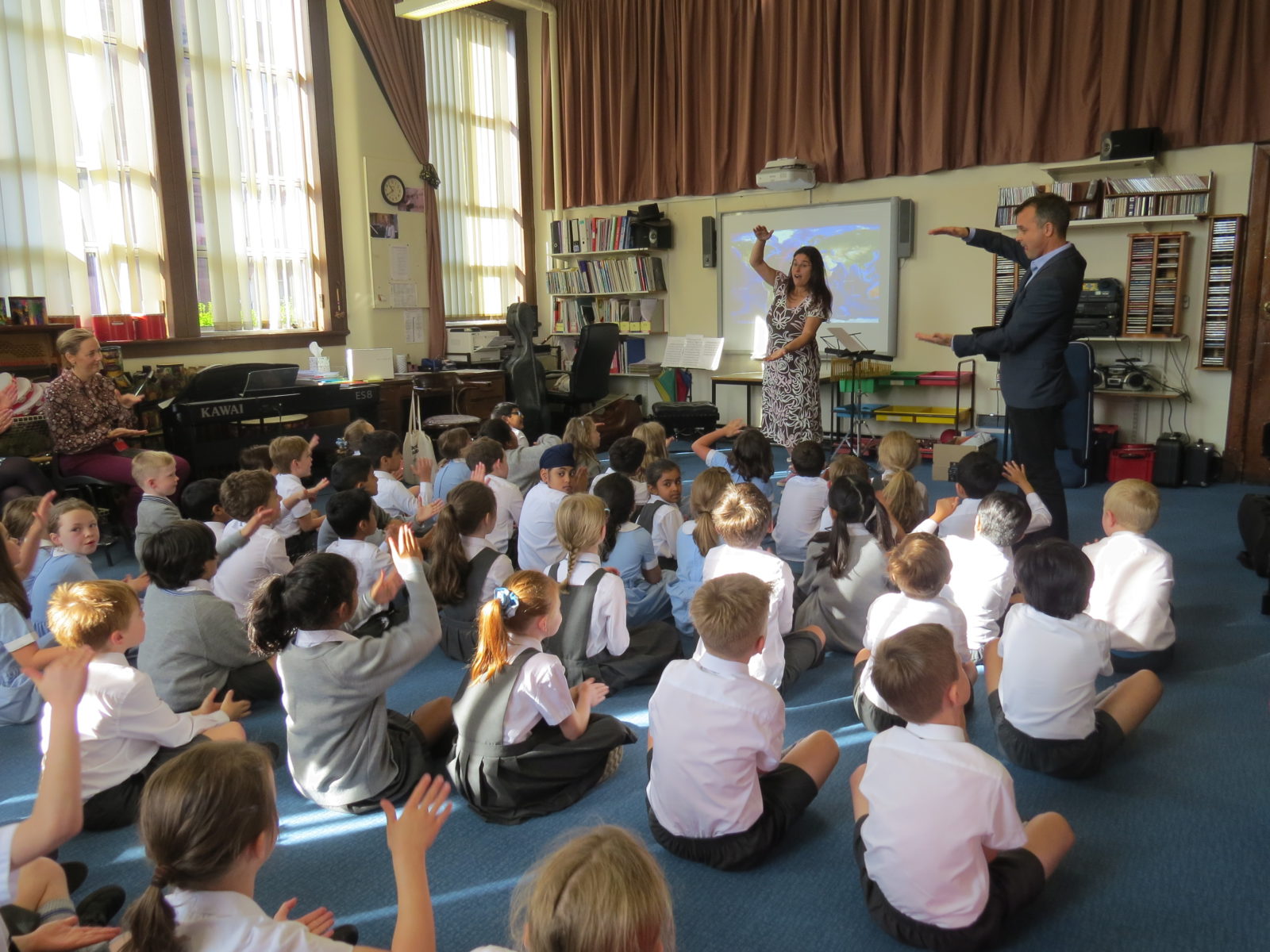 Pupils were encouraged to interact using body sound percussion and singing.