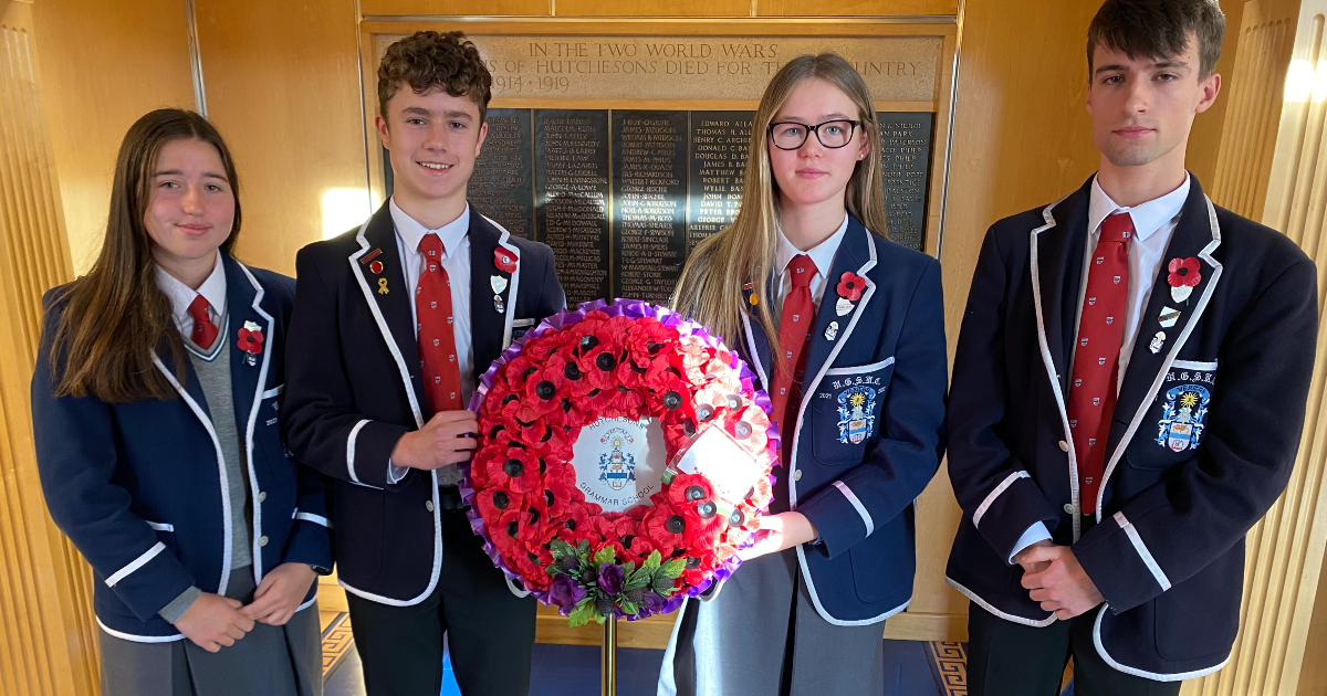 In the Primary School on Wednesday, pupils in each class took great care in making their own wreaths for their Remembrance Service before gathering in the assembly hall with a procession from our pipe band. The Vice House Captains led the assembly and told the story of Arthur Roberts, a World War I survivor from Glasgow whose diary, letters and poems lay forgotten in an attic for over 20 years. This was followed by the reading of Nicole Davies’ picture book, The Day War Came. This story was inspired by a real event: a refugee child who had been refused entry to school because there was not a chair for her. The assembly was concluded with two minutes silence, providing a time to reflect on the past and to consider a more peaceful future. It was wonderful to hear The Hutchesons’ Pipe Band play at the end of our assembly.