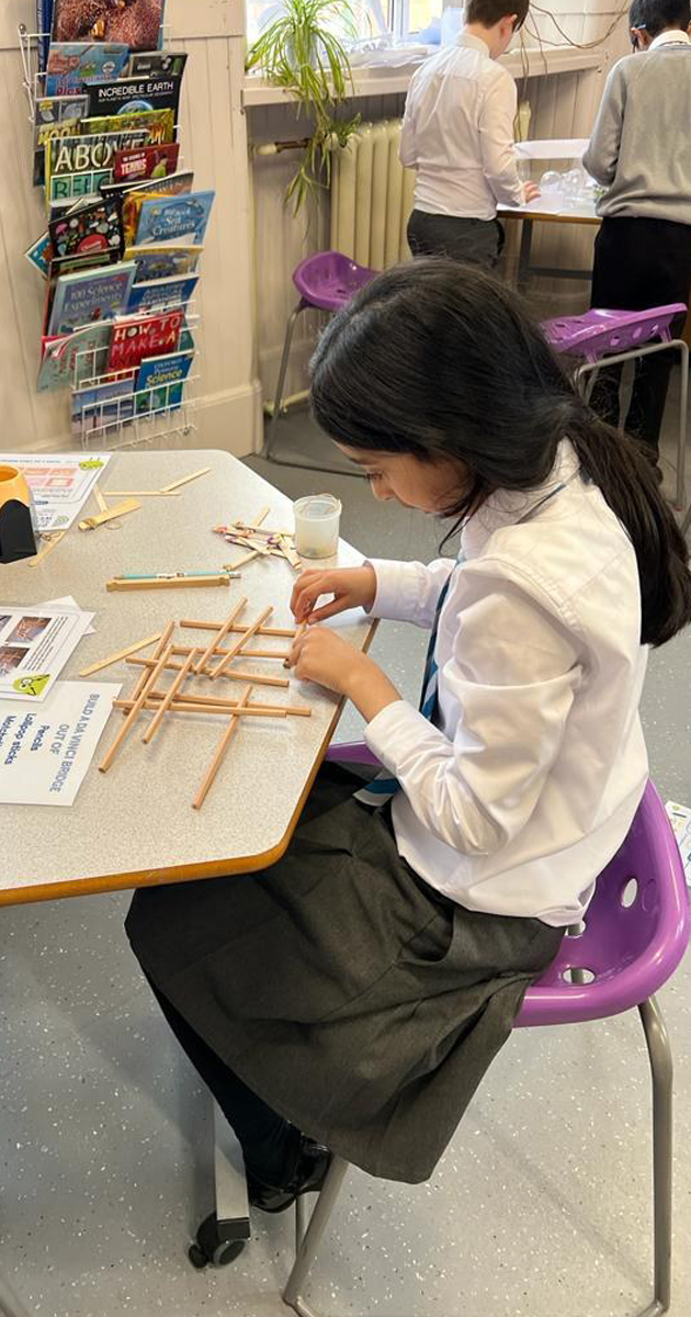 Our older pupils were able to build Da Vinci bridges with broomsticks, pencils, lollipop sticks and even matchsticks. Designing bridges out of paper to support increasing weights, pupils learned about food chains and food webs, drawing arrows between species to show connections. Pupils were able to hypothesise what might happen when one species is taken out and how scientists are working hard to protect habitat connections.
