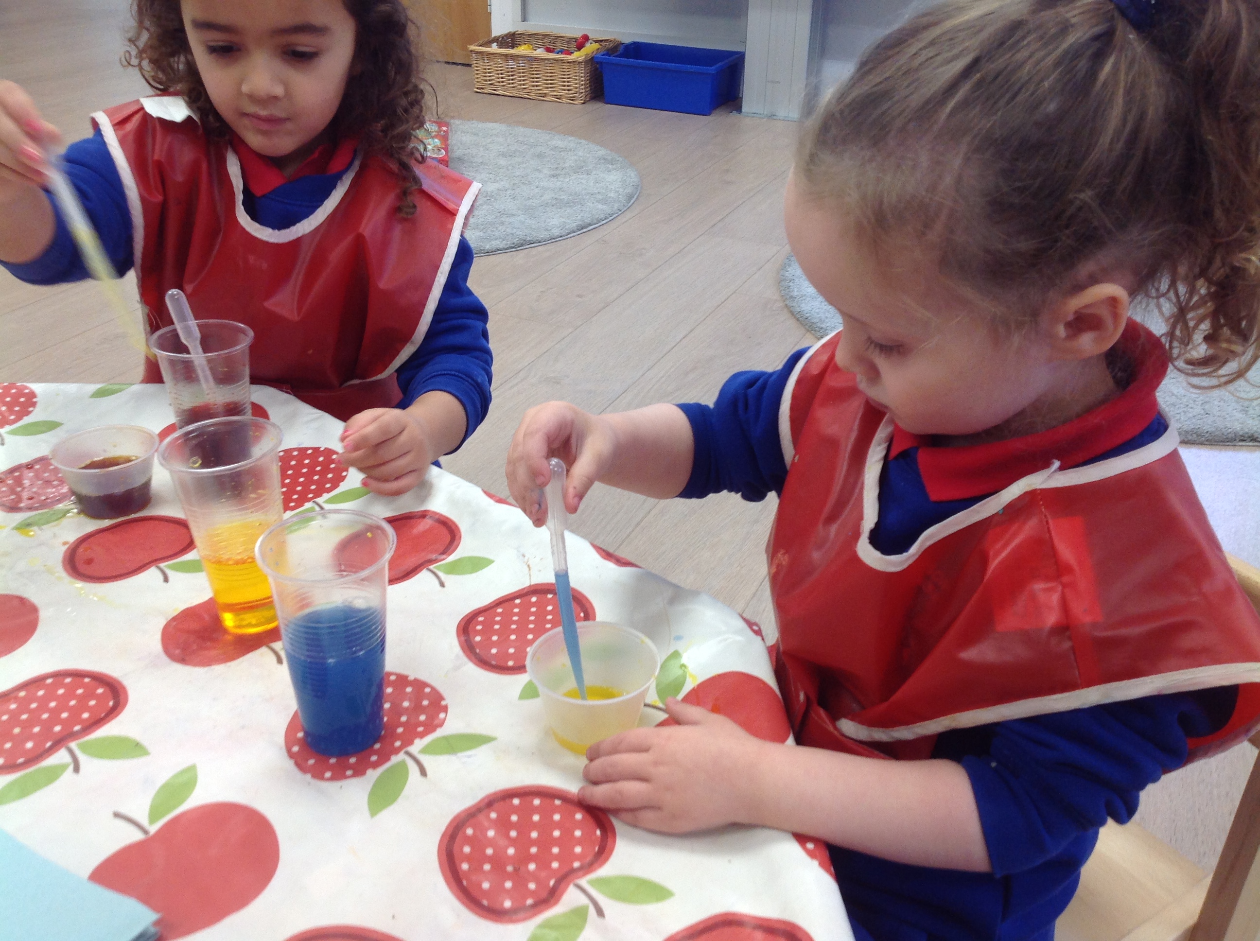 Indoors, exploring new colours has been a constant theme in our water area and in in the creative area with paint.