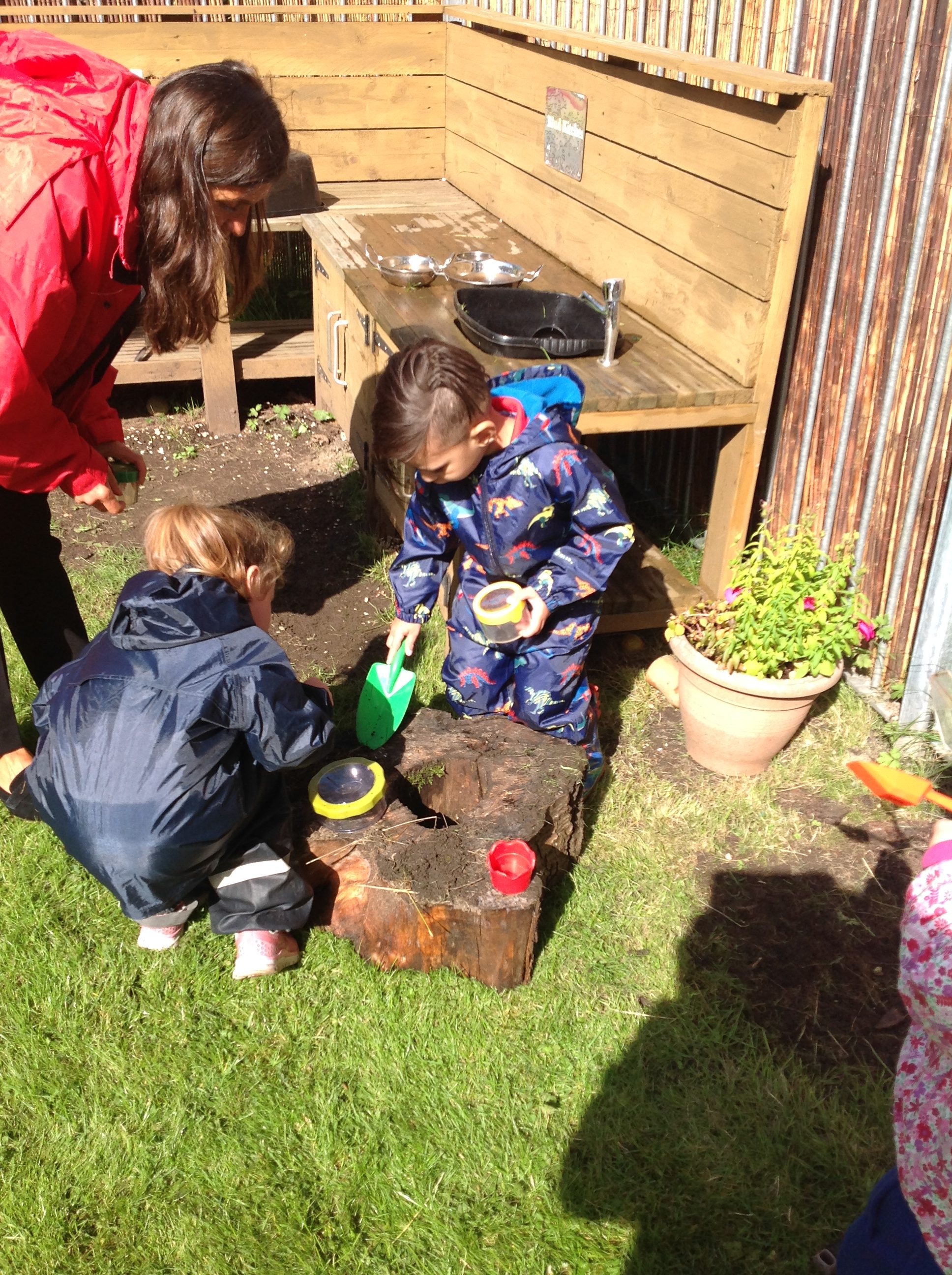 Our outdoor space has provided lots of scientific investigation; worms, snails, mud, water, ice, sand, shadows, plants and falling leaves have thrilled everyone.