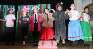 Our performers did very well getting use to the mics and keeping in time to the music as Mr Corkey guided them on piano with Jude (S6) on drums. With many lines to remember along with numerous songs, there was a lot to learn. The acting was entertaining and wonderfully portrayed with a real sense of tension rising as the wolf huffed, puffed, and blew the houses down.