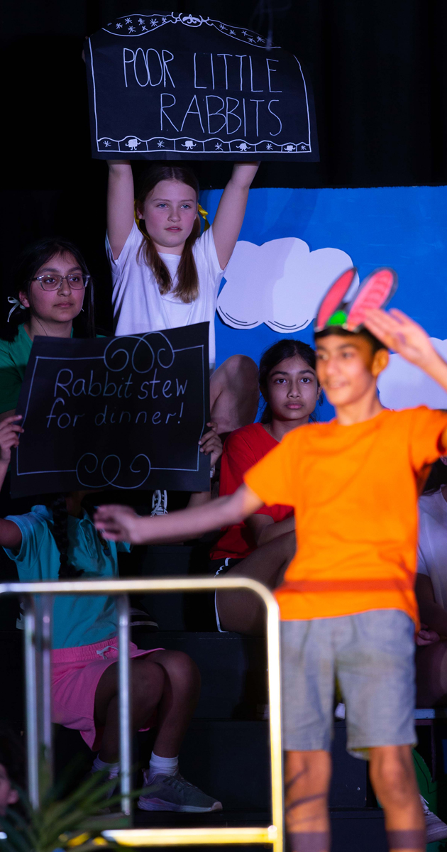 After several weeks of rehearsing, pupils stepped onto the stage for their dress rehearsal in front of the whole Primary School. Cheered on by their peers, it went without a hitch and only fuelled the excitement for their performances at night. Held across two-nights, pupils took audiences on an exciting journey full of colour, jokes, and emotional rollercoasters.